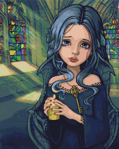 Alanna is a fantasy cross stitch chart based on the artwork of Jasmine Becket-Griffith. This design uses only full stitches which makes it perfect for any fabric 14ct or higher. With good floss coverage your fabric color will not show.