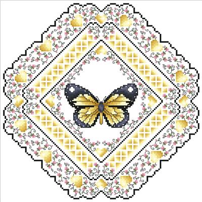 This lovely geometric design, featuring a yellow butterfly is the 3rd design in the series of Butterfly Fantasy patterns.