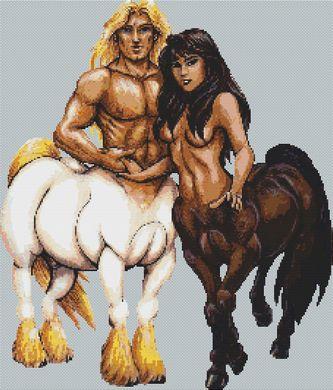 Centaur Love, comic book style, based on the artwork of Megan Giles. Designed using full stitches only to make it perfect for any fabric count and color.