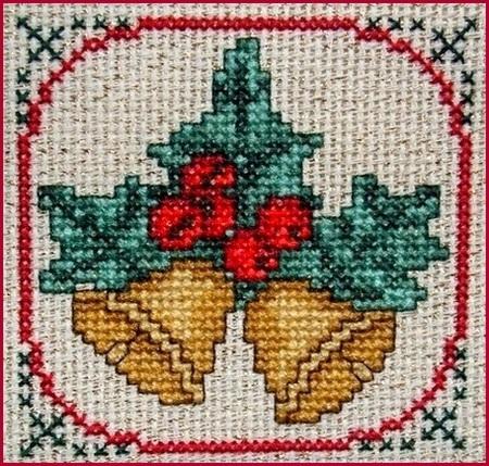 The sparkle to the ornament is already in the fabric you stitch it on! This cheery little Christmas or wintertime motif can also be stitched over one thread on an evenweave fabric for a tiny ornament. Sizing listed for "over one" as well as the 14 count Aida. Instructions are included to create an ornament with silver bells, if you prefer them. A conversion to Sullivans floss is included for both color schemes.
