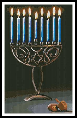 This counted cross stitch pattern with a Hanukkah theme was created from a photograph. Only full cross stitches are used in this pattern.