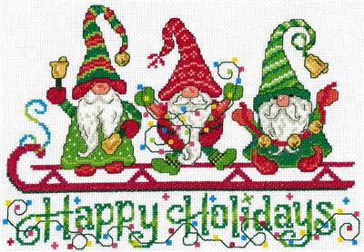 These little gnomes are ready to sled into your holiday season!Happy Holiday Gnomes is designed to be stitched on 14ct White Aida fabric and uses 16 different colors of floss.