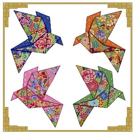 Origami Birds - 4 Seasons Design 002 -spring flowers print on these beautiful sampler added with gold colored borders.