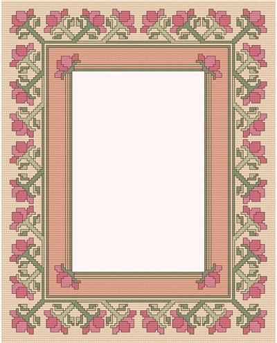Add this charming cross stitched mat to your favorite photograph. When stitched in 16 ct, the mat measures 8 in. x 10 in. with a 4 in. x 6 in. opening - the size of a standard printed photo. The stitch count is 128x160. The design is worked in whole stitches and back stitching. The chart is shown in black and white symbols. Instructions for finishing the mat are included.