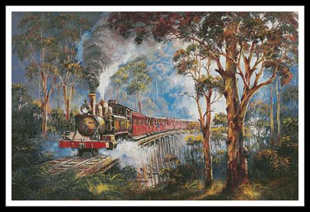 This counted cross stitch pattern of the Puffing Billy Train was created from the beautiful artwork of John Bradley. Image copyright of John Bradley / artlicensing.com(THIS IS THE LARGE VERSION). Only full cross stitches are used in this pattern. It is a black and white symbol pattern.