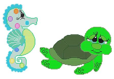 Large size Wall Art. decorate your child's room with Sea life. Sea Horse W61 x H120 holes Turtle W125 x H83 holes