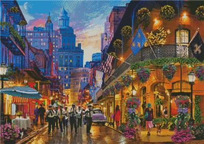 This counted cross stitch pattern of New Orleans was designed from beautiful artwork by David Maclean. Original image copyright of Meiklejohn Graphics Licensing (MGL). Only full cross stitches are used in this pattern. It is a black and white symbol pattern.